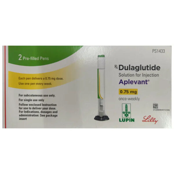Aplevant 0.75mg Pre-filled Pen is an injectable medicine used to lower blood glucose levels in adults with type 2 diabetes. It works by helping your body produce insulin and reducing the amount of sugar your liver makes. The dose of Aplevant 0.75mg Pre-filled Pen will depend on your condition and what other diabetes medicines you are taking. You can use it at any time of day with or without food but try to use it on the same day each week to get the most benefit. Your doctor or nurse will show you how and where to inject the medicine. Follow the instructions carefully. Do not stop taking this medicine without talking to your doctor. If you do, your blood glucose levels may increase and put you at risk of serious complications. It should be used with a proper diet and exercise to control high blood glucose. Aplevant 0.75mg Pre-filled Pen should be stored in a fridge until you need it but do not freeze it. The most common side effects of Aplevant 0.75mg Pre-filled Pen include nausea, diarrhea, stomach pain, and loss of appetite. It can also lead to hypoglycemia (low blood sugar level) especially if you are taking other medicines to lower blood sugar. Make sure you know how to recognize and deal with it. Before using this medicine, talk to your doctor if you have ever had liver or kidney disease, pancreatitis, or stomach problems. Also, tell your doctor if you are taking any other medicines which may affect the way this medicine works. If you are pregnant or breastfeeding, ask your doctor if it is safe to take Aplevant 0.75mg Pre-filled Pen.