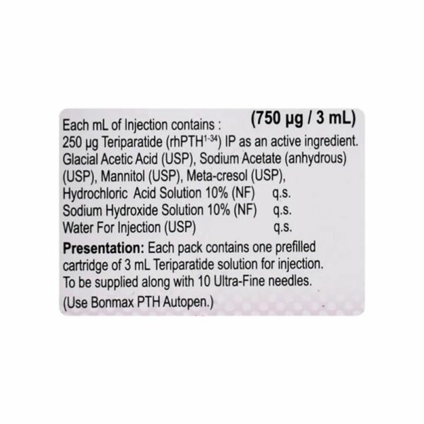 Bonmax PTH 750mcg Solution for Injection may decrease alertness, affect your vision or make you feel sleepy and dizzy. Do not drive if these symptoms occur.
