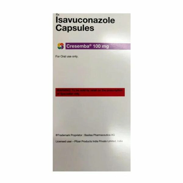 Cresemba 100mg Capsule is an antifungal medicine. It is used to treat certain types of fungal infections called invasive aspergillosis and invasive mucormycosis in patients 18 years of age and older. It works by stopping the growth of fungi in the body. Cresemba 100mg Capsule can be taken with or without food. Take it exactly as your doctor has advised. Swallow the whole capsule, do not chew, crush, dissolve, or open the capsules. Continue to take the medicine until you finish your complete course, even if symptoms disappear after a few days. Stopping it too early may result in a return of the infection. The most common side effects of this medicine include nausea, vomiting, diarrhea, headache, increased liver enzymes, decreased potassium level in blood, constipation, breathlessness, cough, peripheral edema, and back pain. If any of these side effects persist or worsen, consult with your doctor. In rare cases, Cresemba 100mg Capsule may cause serious liver disease. Get medical help right away if you have any symptoms of liver damage, including persistent nausea/vomiting, loss of appetite, stomach/abdominal pain, yellowing eyes/skin, or dark urine. Before taking the medicine, tell your doctor if you have any known history of allergy to this medicine. Let your doctor also if you have any preexisting medical conditions, especially liver disease and heart problems. This medicine may make you dizzy. Avoid consumption of alcohol while on treatment with this medicine. Additionally, do not drive, use machinery, or do anything that needs alertness until you know how the medicine works. Before taking this medicine, tell your doctor if you are pregnant, planning to become pregnant, or breastfeeding, as it can cause harmful effects to the developing baby.