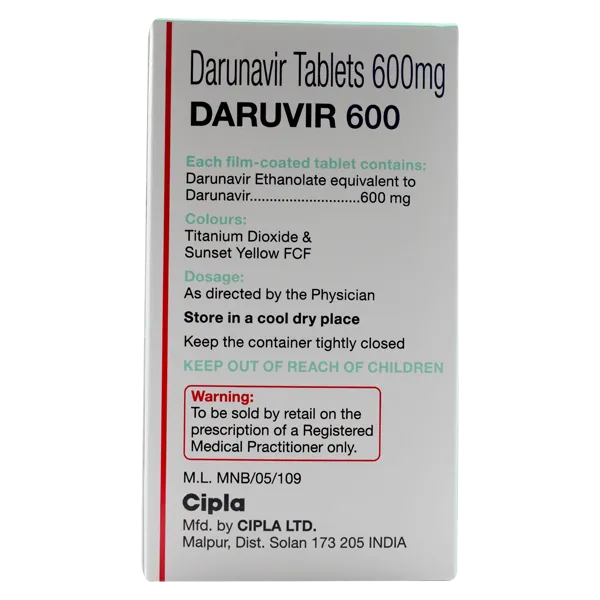 Please do not take Daruvir 600mg Tablet 60’s if you are allergic to any of its constituents or if you have severe liver problems. Inform your doctor if you have diabetes, infections, haemophilia, musculoskeletal problems, rash, kidney or liver impairment. Consult your doctor before taking Daruvir 600mg Tablet 60’s if you are pregnant. Due to the risk of HIV transmission, women infected with HIV are recommended not to breastfeed. Daruvir 600mg Tablet 60’s may cause dizziness, so drive only if you are alert. Daruvir 600mg Tablet 60’s should not be given to children below 3 years of age or weighing below 15kg as safety and effectiveness have not been established. Avoid or limit alcohol consumption as it may cause increased dizziness. While taking this medication, you can still pass on HIV, though the risk is reduced by effective antiretroviral therapy. Discuss with your doctor the precautions you should take to avoid infecting others. Talk to your doctor immediately if you notice any signs or symptoms of infection or inflammation. Keep your doctor updated on your health condition and medications to rule out any negative effects or adverse events.