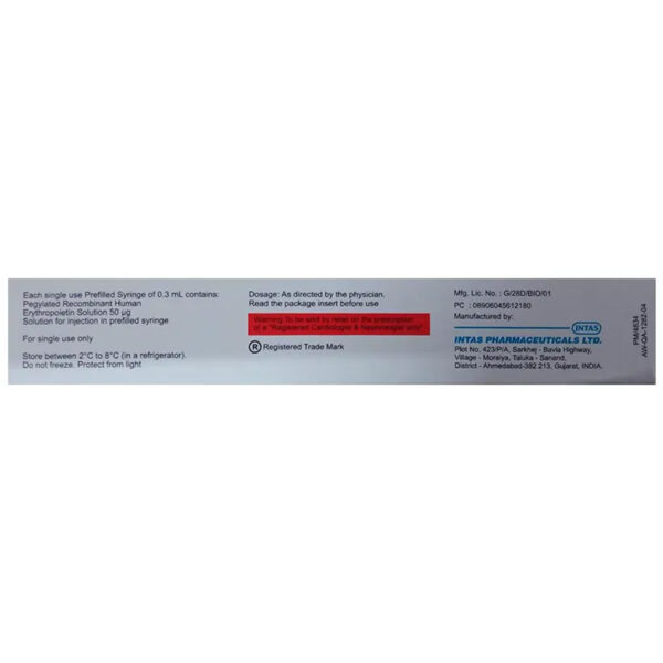 CONSULT YOUR DOCTOR – There is limited information available on the use of Erypeg 50mcg Injection in patients with kidney disease. Please consult your doctor.