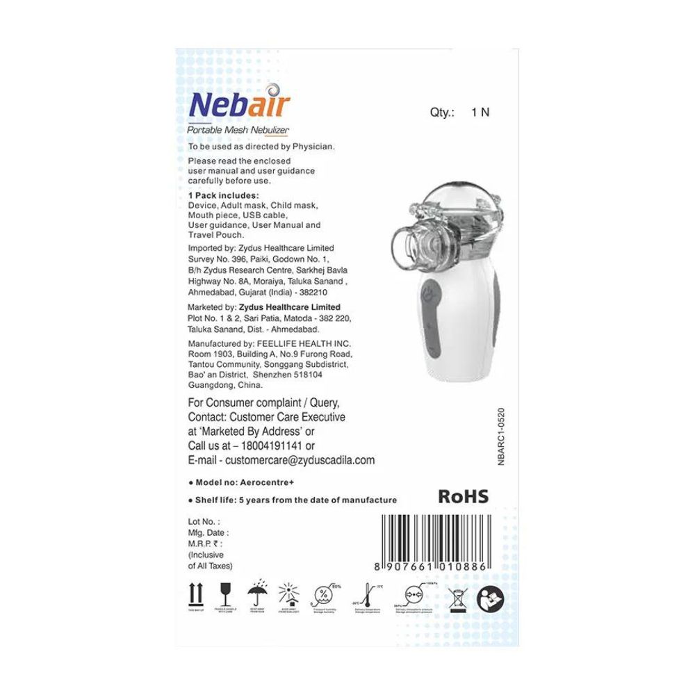 Nebair Portable Mesh Nebulizer helps to get relief from asthma, chronic bronchitis, allergies and other respiratory disorders. It is user-friendly, lightweight and can be cleaned easily. It can be used at your convenience