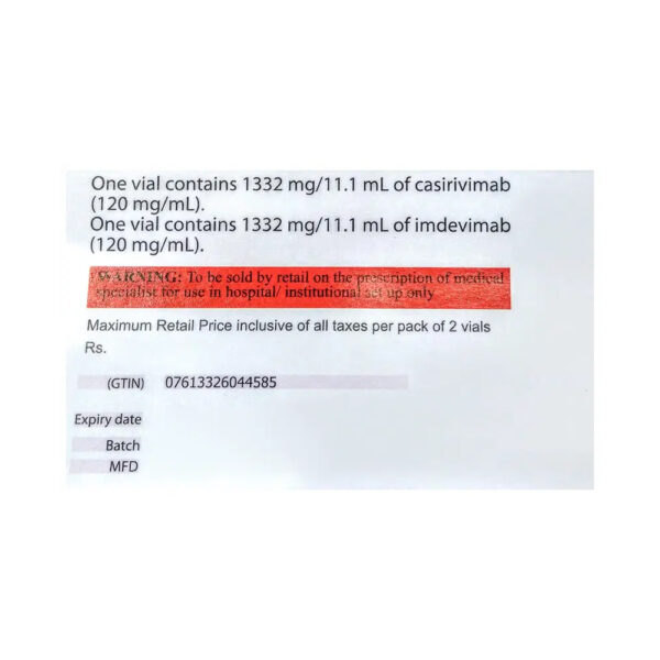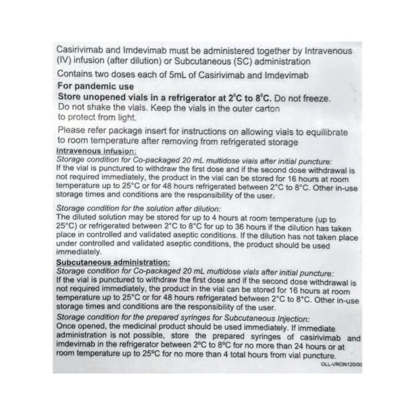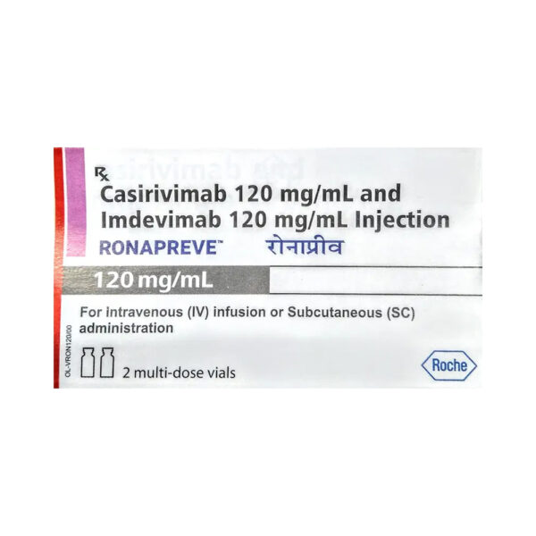 Ronapreve 120mg Injection Combi Pack contains two monoclonal antibodies used together for the emergency treatment of mild to moderate COVID-19 in adults and children aged 12 years and above and over 40 kg in weight. It is most effective if taken after an early laboratory diagnosis (within 7 to 10 days).